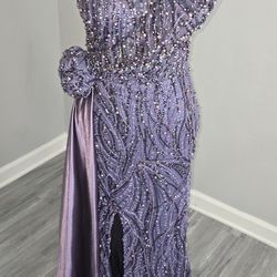 Custom made lavender beaded one shoulder prom dress with a slit$200Schaumburg, IL