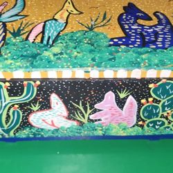 Vintage Handmade Hand Painted Wood Box Jewelry Trinket Fish Colorful$10Chicago, IL