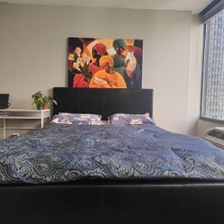 Queen Size Black Upholstered Bed Frame - Faux Leather $200Chicago, IL
