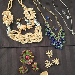 Vtg. Jewelry Lot Of 13 (6 Sets) Necklaces, Brooch's & Earrings SOME Signed Rare!$55Salem, WI