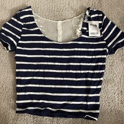 Navy & White Striped Lace Back Top XS – Short Sleeve NWT$16Algonquin, IL