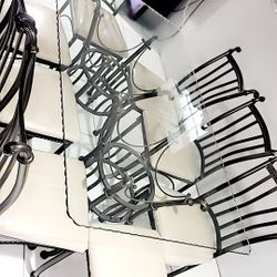 Tempered Glass Table with 6 Black Leather Chairs$450Chicago, IL