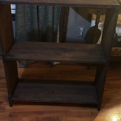 rustic, dark-stained wood shelving unit.$50Zion, IL