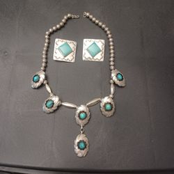 🤍✨Sterling Silver Jewelry Set – Turquoise Earrings, Link Bracelet & Venetian Box Chain Necklace$130Oak Park, IL