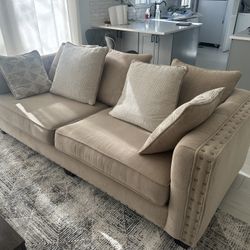 Beige Fabric Sofa with Nailhead Trim & Plush Cushions$150Palatine, IL