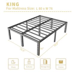 ALDRICH King Size Metal Bed Frame 16” Tall | Heavy Duty 3000 lb Platform | No Box Spring Needed | Noise-Free Black Steel$70Joliet, IL