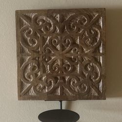 carved wooden wall decor panel with a metal candle holder. $45Naperville, IL