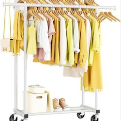 Double Rods Clothes Rack, Rolling Clothing Rack for Hanging Clothes Portable Wardrobe Rack, Metal Garment Rack Sturdy Coat Rack for Bedroom Laundry Li$45Oak Lawn, IL