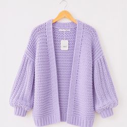 NWT Altar’d State Laurna handmade chunky lavender balloon sleeve cardigan S/M$65Batavia, IL