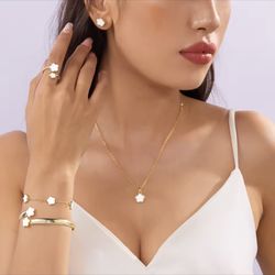 5pcs Lucky Five-petal Flower Women's Jewelry Set, Fashion Flower Bracelet + Necklace + Earrings + Br$10Chicago, IL