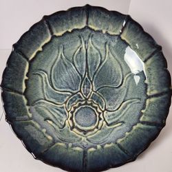 Pottery Bill Campbell Scalloped Raised Lotus Plate –Blue & Green Reactive Glaze$120Forest Park, IL