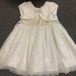 Beautiful Jona Michelle girls 4T ivory sparkly gold accent tulle dress with attached faux fur shrug and bow - perfect for Easter$10Stickney, IL