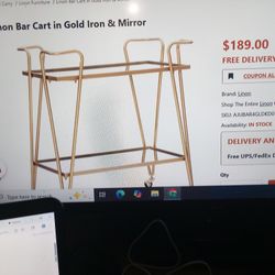 Bar Cart Linon In Gold And Mirror 🪞$95Skokie, IL