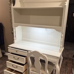 Solid wood white desk with chair, Mirror, New LED light and hutch$120Roselle, IL
