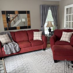 Red couch, matching chair and ottoman. Cash Only!!$300Lake In The Hills, IL