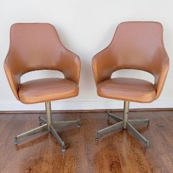 Vintage Cognac Brown Leather Swivel Chairs - Free Delivery$450Libertyville, IL