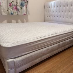 Queen White Velvet Bed Frame AND Mattress$120Chicago, IL