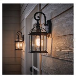 Wickford 15.4 in. 1-Light Weathered Bronze Hardwired Outdoor Wall Light Lantern Porch Sconce with Clear Glass (2-Pack) - New$50Chicago, IL