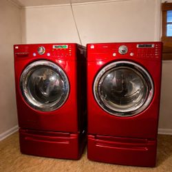 LG TROMM Red Front Load Washer & Dryer Set with Pedestals – Excellent Working Condition$700Des Plaines, IL