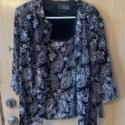 NEW Siz 1XL Alex Evening 3/4 Sleeve Printed Twinset Top Cardigan Black Glitter Stretch$55Chicago, IL