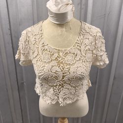 Love Culture Cream Crochet Lace Short Sleeve Crop Top$33Chicago, IL