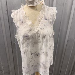 Lace Trim Floral V-Neck Sleeveless Blouse - Cream with Soft Gray Floral Size L$29Chicago, IL