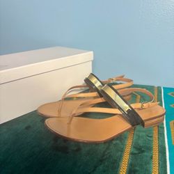 Halogen Harita Thong Tan Black Gold Sandal Womens Size 10M Flats Open Toe Used$40West Chicago, IL