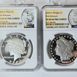 2 coin set 2024 morgan peace proof silver dollars ngc pf 69 uc first releases