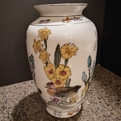 Vintage Hand-Painted Porcelain Vase - Floral and Birds $60Lake Barrington, IL