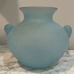 VTG Blue Satin Scavo Murano Glass Vase Double Handle Seguso Verti D'Arte Rare$95Chicago, IL