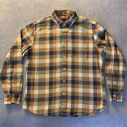 J Crew Size Extra Large Flannel Navy Blue Tan Brown Gingham Plaid Made 2022 😎$30Plainfield, IL