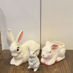 Vintage White Ceramic Bunny Décor Set – Rabbit Figurines & Planter$30Vernon Hills, IL