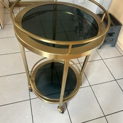 World Market Brass Round Bar Cart β 2-Tier Glass Shelves, Wheels β $85$60Chicago, IL