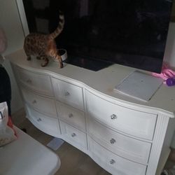 Refinished Solid Wood Swan White Wide Bedroom Dresser TV Stand Delivery Available $325Elgin, IL