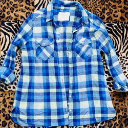 WOMENS✨🦋🌼SONOMA🌼🦋✨BLUE GREEN WHITE🦋🤍💚PLAID SIZE LARGE LONG SLEEVE BUTTON UP SHIRT🍭✨$7Byron, IL