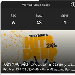 Toby Mac 2 Tickets Milwaukee, WI$225Bedford Park, IL