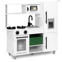 Delta Children Deluxe Modern Kitchen - Wooden Toy Kitchen Playset with Realistic Knobs that Turn/Click, Oven, Sink and Fridge/Freezer with Ice Maker, $65Orland Hills, IL