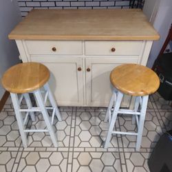 Kitchen island, stationary kitchen island, home bar cabinet w/shelves/drawers,2 chair stools$140Oak Lawn, IL