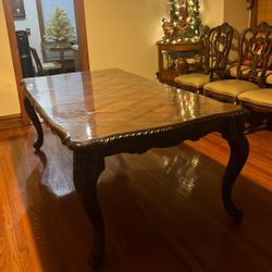 Dining set with 6 newly reupholstered chairs. I paid 700 for the upholstery. The table with a plastic cover cost 100. Custom-made. Some scratches, see$500Chicago Ridge, IL