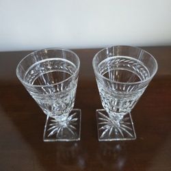 Pair of cut crystal wine or cordial glasses with decorative laurel band and starburst base, by Seneca Glass Company$28Willowbrook, IL
