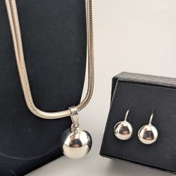 925 Sterling Silver Chime Ball Necklace + Matching Earrings Set$249Chicago, IL