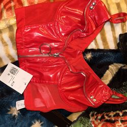 Red faux leather crop top$10Chicago, IL