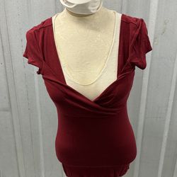 Elie Tahari Burgundy Wrap-Front Short Sleeve Top Size XS$28Chicago, IL