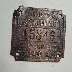 1914 Chicago Vehicle Tax Tag Passenger Auto 35 HP or less$150River Grove, IL