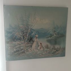 Elegant Oversized Floral Canvas with Soft Neutral Flowers on a Blue Background 29x58 inches New$70Buffalo Grove, IL