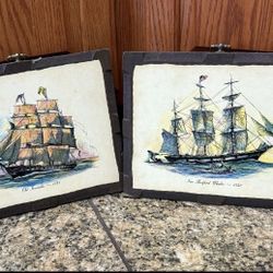 Pre Owned (2) Vintage Sailing Ships On Hanging Wooden Plaques $25New Lenox, IL