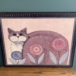 Pre Owned Vintage Unique Eye Catching Wooden Plump Light Purple Cat Print Signed$30New Lenox, IL