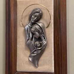 Pre Owned Vintage Holy Family Pewter Icon With Halo On Felt Hanging Plaque $20New Lenox, IL