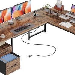 63 Inch L Shaped Desk with Power Outlets, Type-C Port, Drawers$80Clarendon Hills, IL