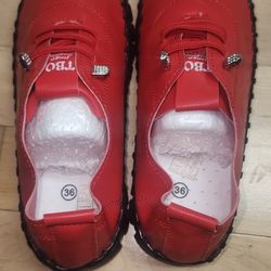 Women's 6.5 Red Leather Soft Bottom Flat Loafers Handmade$10Chicago, IL